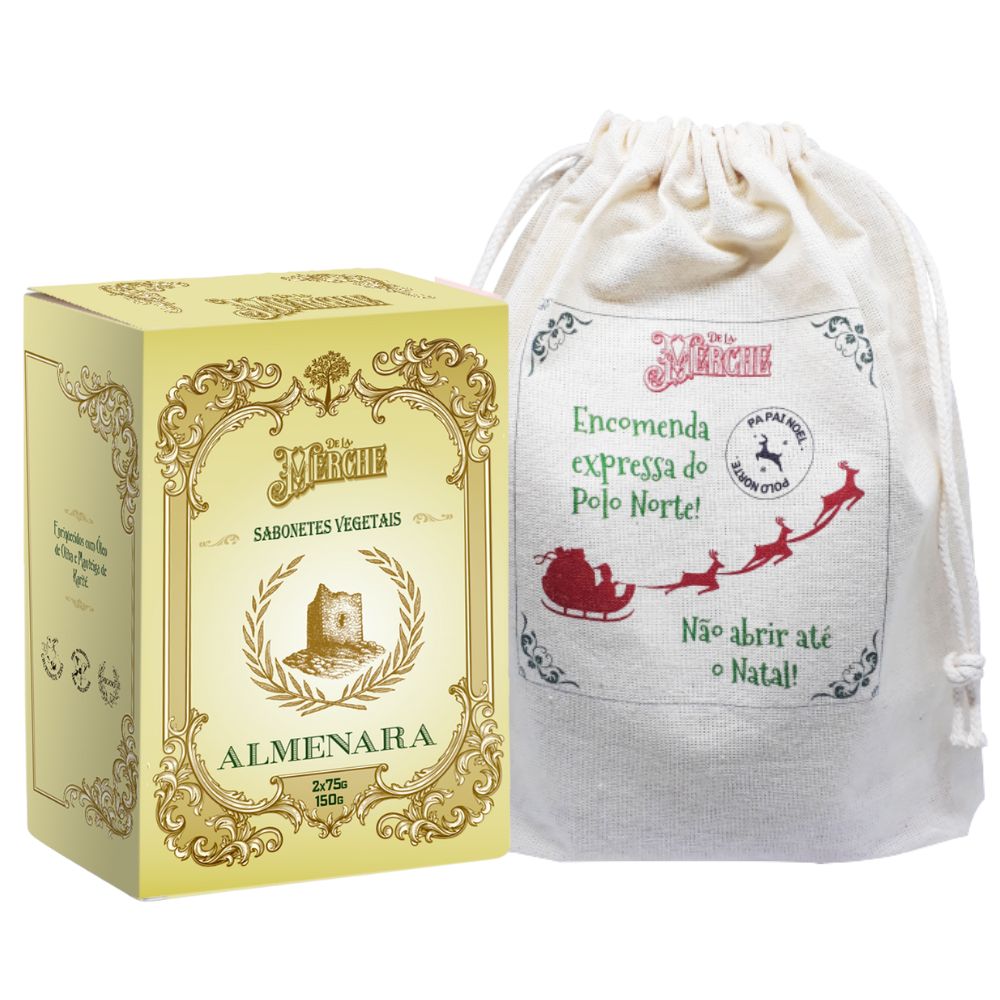 Duo de Sabonetes Premium Almenara (150g) e Sacolinha de Algodão Natalina